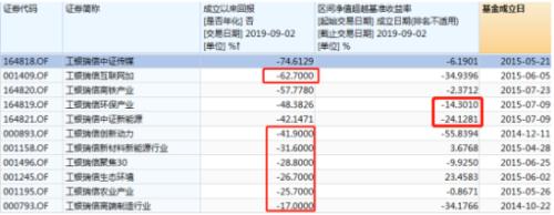 Wind数据显示,工银瑞信基金旗下多只产品成立以来亏损严重,主动产品方面,工银互联网加亏62%,工银创新动力亏41%,工银新材料新能源亏30%。指数基金方面,工银中证传媒成立以来输基准6%,工银高铁产业输基准2%,工银环保产业输基准14%,工银中证新能源输基准24%。(文章来源:新浪挖掘机)