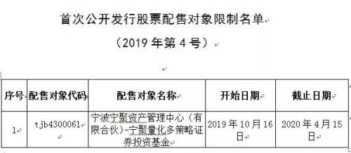 10月15日,中证协表示,决定将在科创板“晶丰明源(688368,诊股)”(688368)新股发行项目网下申购过程中,存在违反《科创板首次公开发行股票网下投资者管理细则》第十五条、十六条规定的股票配售对象宁波宁聚资产管理中心(有限合伙)-宁聚量化多策略证券投资基金列入限制名单。