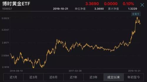 受今年贸易争端、英国退欧、人民币汇率波动等风险事件影响,黄金的避险价值凸显,几只黄金ETF年内收益率皆站上19%以上,多只黄金ETF净值在8月末创下历史新高。