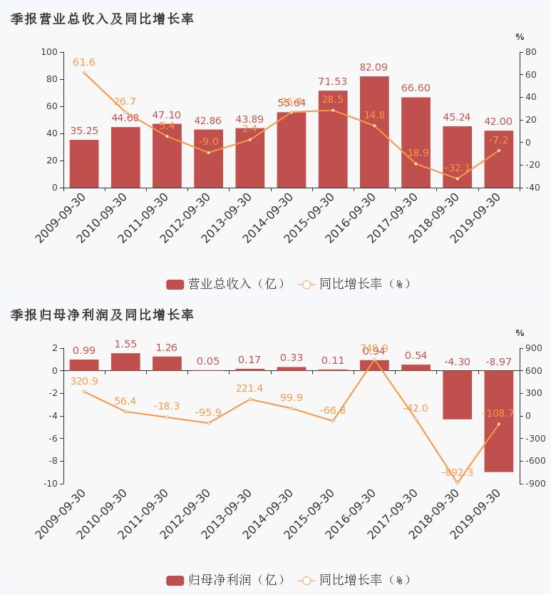 公司业绩在今年可谓是如履薄冰,在8月28日披露中报中,公司利润就亏损高达5.9亿,三季报这个9亿或是压倒骆驼的最后一根稻草了。