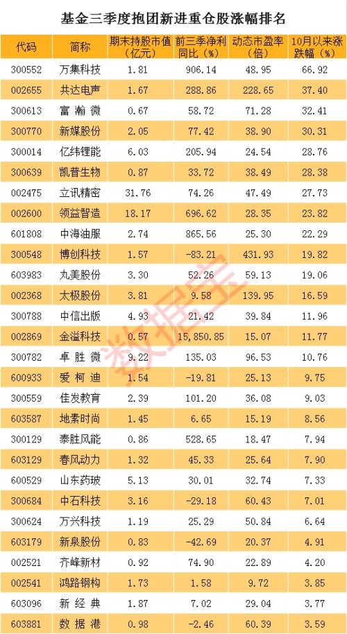 基金三季度抱团新进重仓股名单:最爱科技股 多只逆市大牛股在列