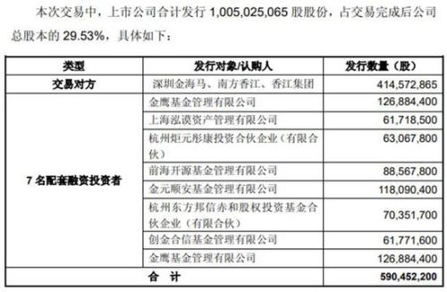 当时,香江控股为收购南方香江、深圳金海马及香江集团等3家关联方持有的与家居商贸业务相关的物业资产,曾向金鹰基金、金元顺安等7名配套融资投资者定向发行了5.90亿股,其中金鹰基金即认购了1.27亿股。