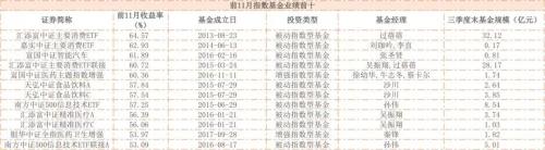 截至11月28日,上榜的医药主题基金分别为富国中证医药主题指数增强、汇添富中证精准医疗以及银华中证全指医药卫生增强,前十一月净值涨幅分别为60.36%、56.39%、53.97%。另外还有两只科技类主题指数基金上榜,分属富国、南方基金。