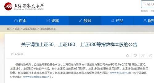 A股主流指数样本股调整如期而至。 6月3日,沪深交易所和中证指数有限公司发布A股主流指数样本股调整公告。其中,上交所上证50指数将更换5只样本股,上证180