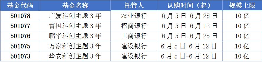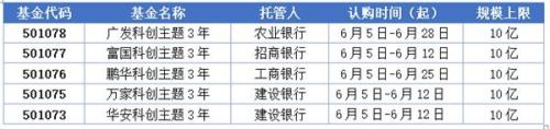 第二批科创主题基金5月27日获批,广发基金、富国基金、华安基金、鹏华基金、万家基金旗下是科创主题3年封闭运作灵活配置混合型基金齐齐发行公告,拟于6月5日(本