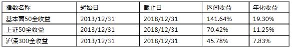 文章的开篇让我们再来回顾一下基本面50指数闪亮的历史业绩——在过去的5年,该指数累计涨幅超140%,是上证50的两倍,年化近20%,远超上证50的11.25