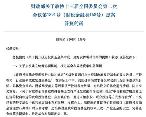 财政部一则消息,影响4万亿政府引导基金,一级市场融资渠道或再收紧。近日,财政部在一份答复全国政协委员张劲的提案的函中指出,财政部将在修订《政府投资基金管理暂