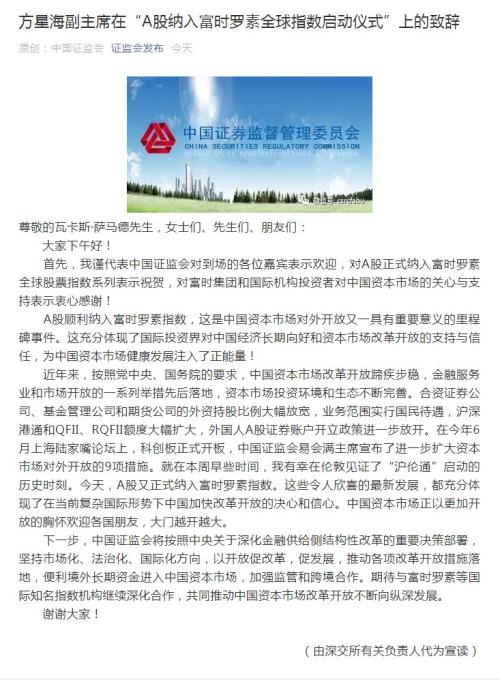 A股将正式纳入富时指数。今天A股收盘后,富时罗素(FTSE Russell)纳入A股第一阶段第一步正式生效,超过1000只A股股票会纳入包括新兴市场指数和主