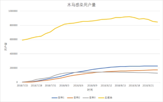 据悉,该木马病毒最早的样本出现在2016年8月,以潜伏周期长而“闻名于世”。根据腾讯安全反诈骗实验室大数据引擎数据显示,最近“Fake System”木马新变种的感染用户增长迅猛,在过去一个月的时间里,几个新变种的感染用户都迅速增长到20万左右,截至目前,“Fake System”木马已影响近百万用户。