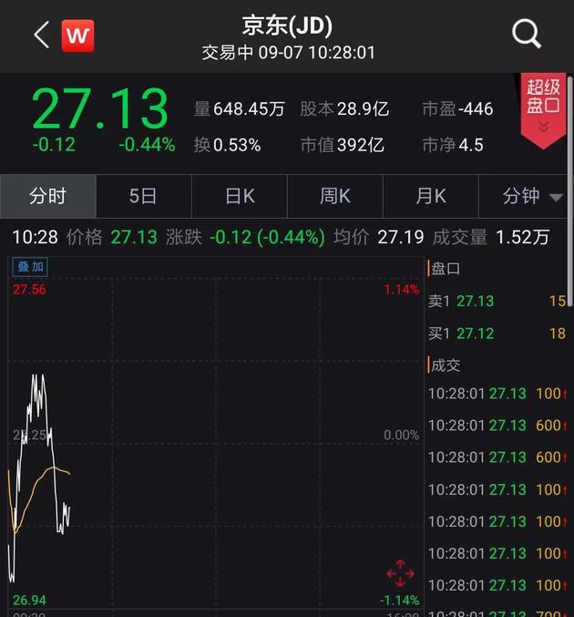 9月7日美股开市,京东股价以下跌开盘,跌幅一度超1%,但随后很快被拉起并小幅上涨,多空争夺激烈。