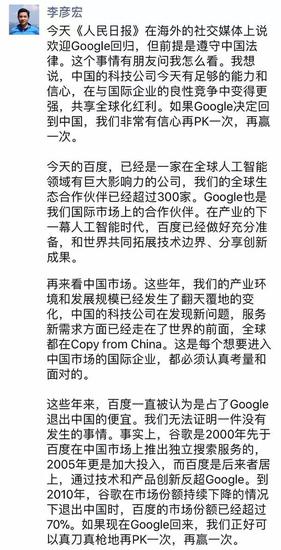 不久前,面对谷歌可能回归中国的传言,百度CEO李彦宏表示,“如果Google决定回到中国,我们非常有信心再PK一次,再赢一次。”