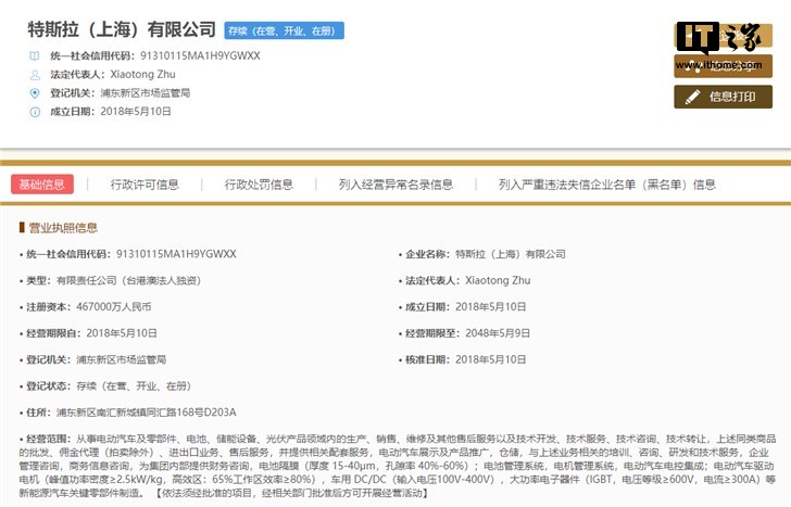 IT之家9月8日消息 尽管近期特斯拉陷入不小的风波,但是该公司对上海工厂的投入似乎进行得较为顺利,注册资本也已经大幅增长。