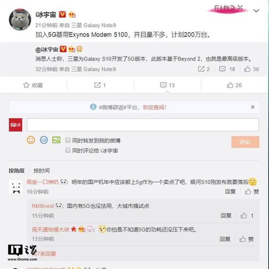 著名的三星手机爆料者@i冰宇宙在今天发表微博,称有消息人士表示,三星正在开发支持5G通信的Galaxy S10手机,同时该版本为Beyond 2,也就是最高级版本。预计5G版Galaxy S10手机将会搭载最出色的硬件。