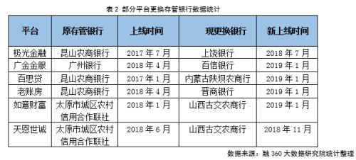 今年1月互联网金融风险专项整治工作领导小组办公室、P2P网贷风险专项整治工作领导小组办公室发布了《关于做好网贷机构分类处置和风险防范工作的意见》(以下简称“175号文”),175号文对网贷机构的分类、分类处置指引、总体工作要求等做出规定,并对网贷风险防范工作提出意见。文件指出未出险机构但属于僵尸类、规模较小、风险较高类机构应以“退出”为主。随着平台的清退,开展资金存管业务的银行退出的可能性也随之增加。