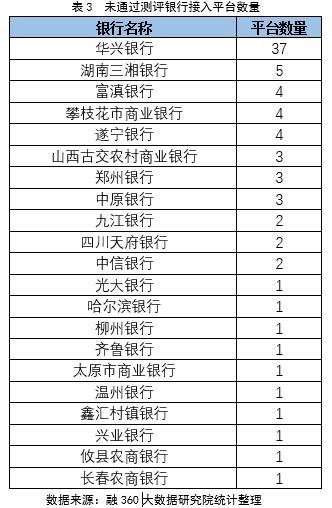 统计数据显示,目前共计21家开展资金存管业务的银行未通过白名单测评,其中上线平台数量最多的为华兴银行,共计37家。其余20家银行目前共上线正常运营平台数为42家,且上线平台数均为个位数,其中10家银行仅上线1家平台。可以看出未来这些银行退出存管业务的可能性较大。