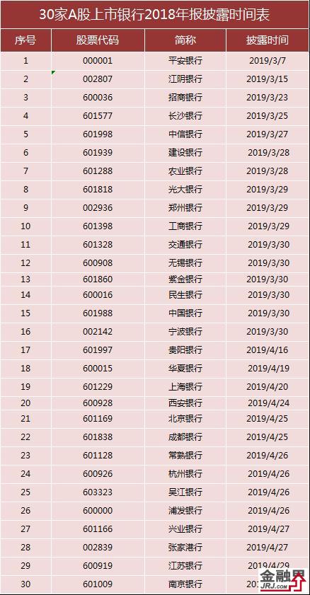 3月6日晚间,首家A股上市银行2018年年报出炉。从30家A股上市银行年报的披露时间来看,16家银行集中在3月中下旬发布,其余14家将集中在4月中下旬发布。