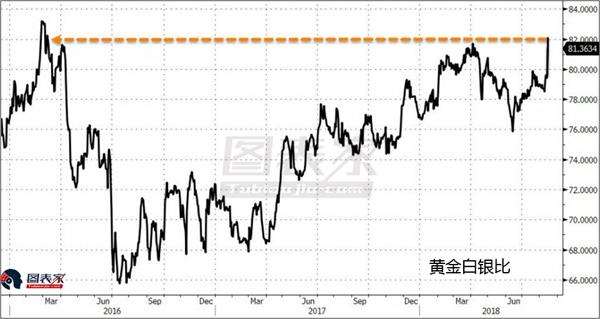 黄金白银比表现的更为清晰, 当前是白银相对于黄金自2016年2月以来最弱的时刻 。