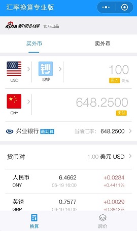 新浪财经“汇率换算微信小程序”现已接入22个主要国家汇率换算的实时行情,方便外汇投资者即时查询最新汇市信息。同时,小程序还可提供“换汇最划算”的银行信息,更适合各进出口企业、外汇公司、海淘族、出境游等群体使用。